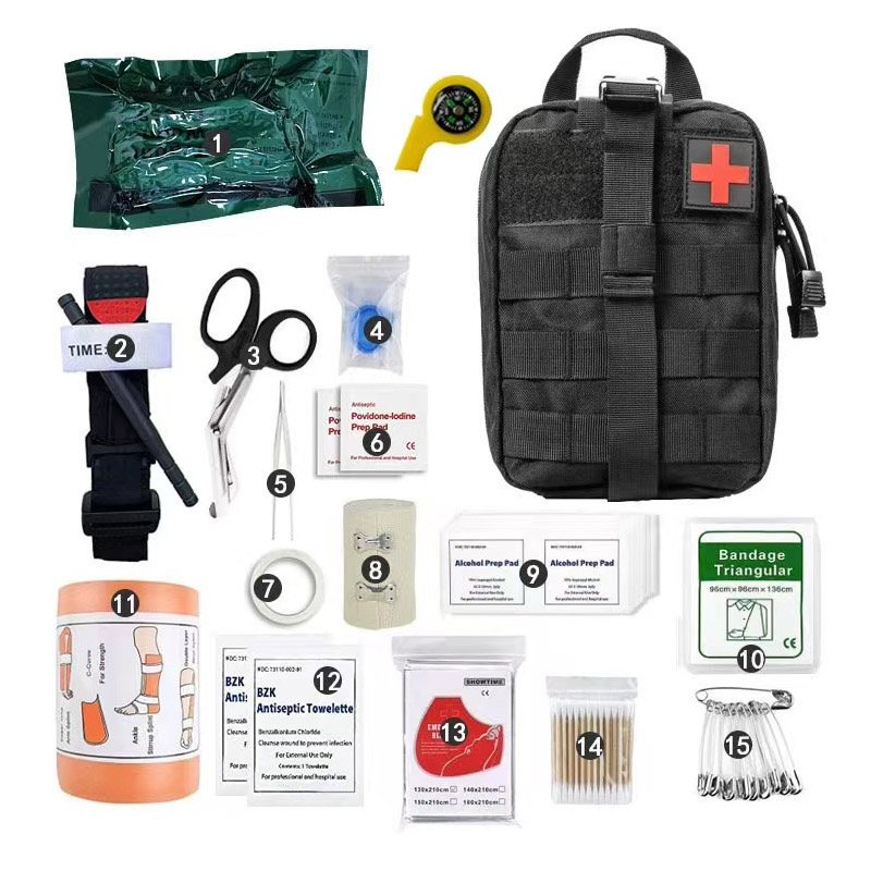 Sotilaallisen ensiapupakkauksen esineet on kaikki valittu ja suunniteltu huolellisesti, ja ne kohdistuvat yleisiin traumatyyppeihin osoittavan vahvan ammattitaidon suhteen.