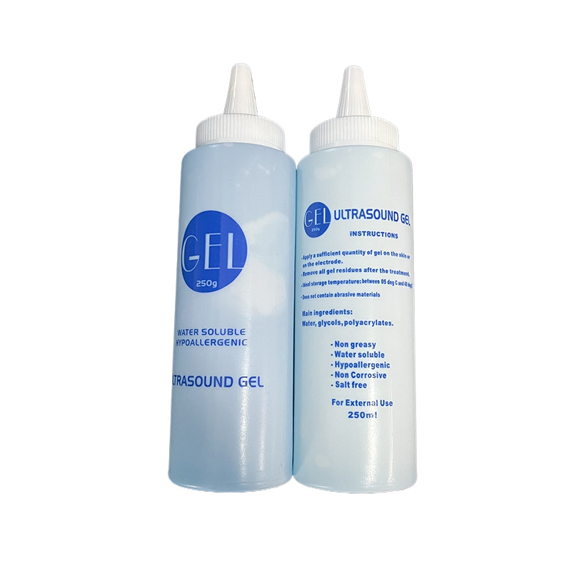Tämä läpinäkyvä ja sininen geeli on turvallinen moniin käyttötarkoituksiin. Se auttaa ultraäänitutkimuksissa ja terapiaistunnoissa. Se auttaa tekemään kuvista teräviä ja helppolukuisia. Geeli on vakaa lämpimissä ja viileissä tiloissa. Se ei vahingoita laitteita. Se ei tahraa kangasta tai ihoa. Se on helppo pyyhkiä pois. Sanji Medical pakkaa sen vahvoihin pulloihin. Voit käyttää sitä kauneudenhoitoon, urheiluterapiaan ja lääkärintarkastuksiin. Se sopii sekä ammatti- että kotitarpeisiin. Geeli toimii hyvin useiden anturityyppien kanssa. Se pitää kosketuksen myös kaarevilla alueilla. Se tukee pitkiä toimenpiteitä kuivumatta. Henkilökunnan mielestä se on nopea soveltaa ja nopea puhdistaa. Se vähentää tahrojen tai virheiden riskiä.